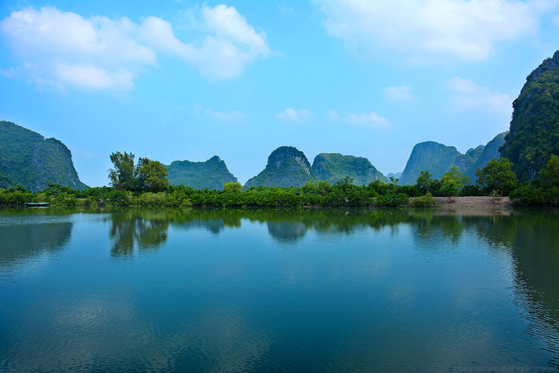 Après le petit déjeuner chez notre hôte, nous partons pour une traversée du lac en bateau. C’est le plus grand lac naturel du Vietnam et depuis le bateau le paysage est grandiose, entouré de falaises calcaires et de jungle. Débarquement sur les rives de la rivière Nang et petite marche jusqu’aux chutes Dau Dang puis jusqu’à la grotte Poung traversant la montagne de part en part et domicile d’une importante colonie de chauves-souris. Nous déjeunons chez un habitant Tay le long de la rivière.